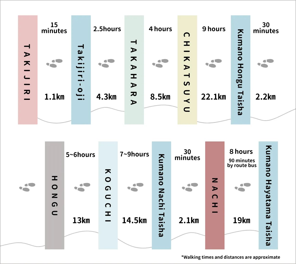 Proceed along the road from Kouchi to Kumano Nachi Taisha, " Ohgumotorigoe."It's a tough mountain path like going through clouds, and it's the hardest part of the Nakahechi route. We aim to visit Kumano Nachi Taisha Shrine while visiting famous places such as "Waroudaishi," a large rock that the gods of Kumano chatted and laughed while sitting in a circle, and "Kusuno no Kubo Hatago ato," which once flourished in Hatago.