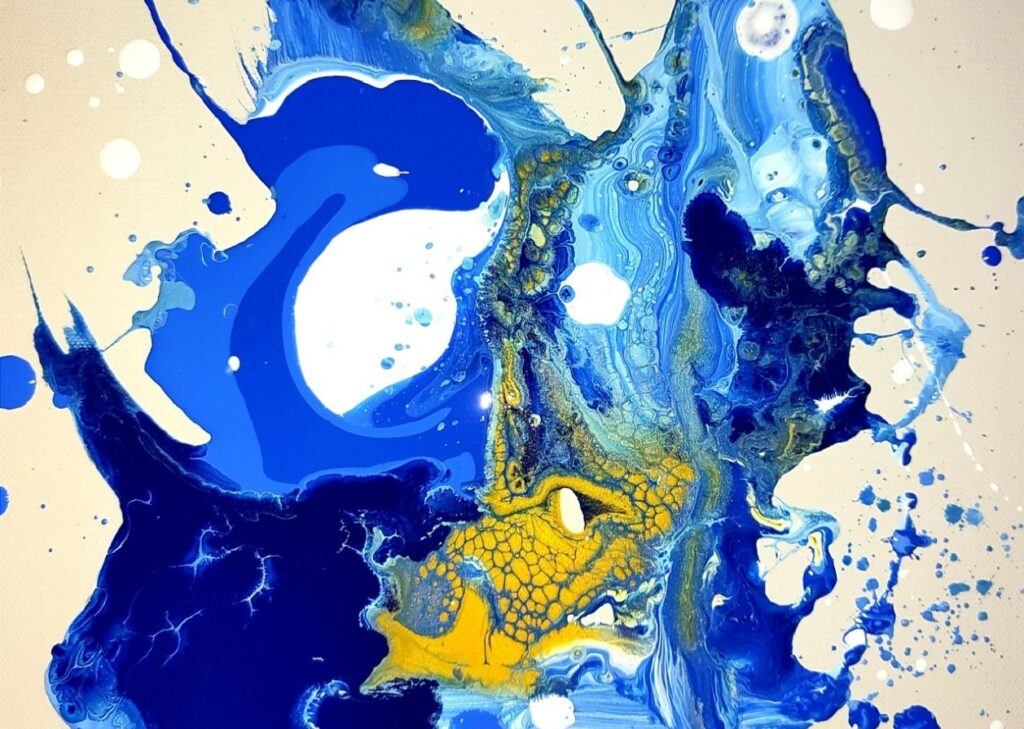 ポーリングアートは、数種類のアクリル絵の具をキャンバスに垂らし、流動性を生かして描く技法。キャンバスを傾けたり、手で絵の具を広げたりして、作品を仕上げます。色同士が混ざり合わないため、美しいマーブル模様が出来上がります。色彩区別がついてコップが持てれば、2歳から体験可能です。