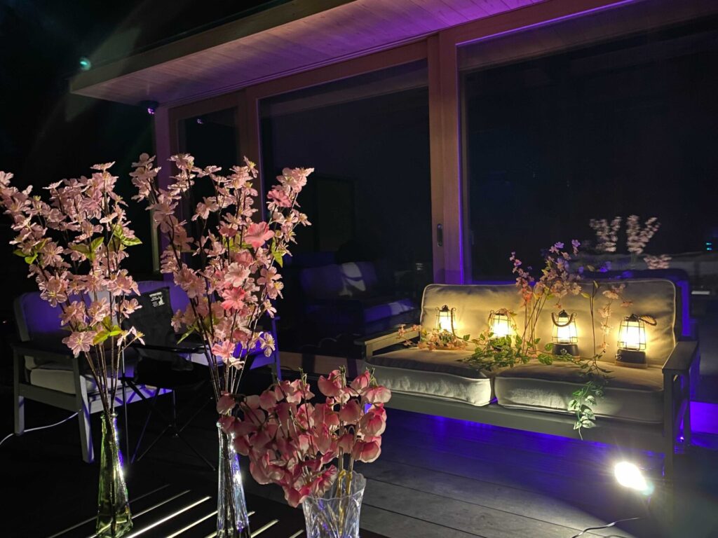 SEN.RETREAT TAKAHARAでは、春季限定(4月1日~4月30日)で、お客様ご自身で桜の造花をアレンジして設置し、ライトアップして自分だけの桜演出ができる「SAKURA DIRECTION」を開始します。思い思いの場所に咲かせた桜をライトアップし、バーベキューや飲み会に華を添えてみてください。