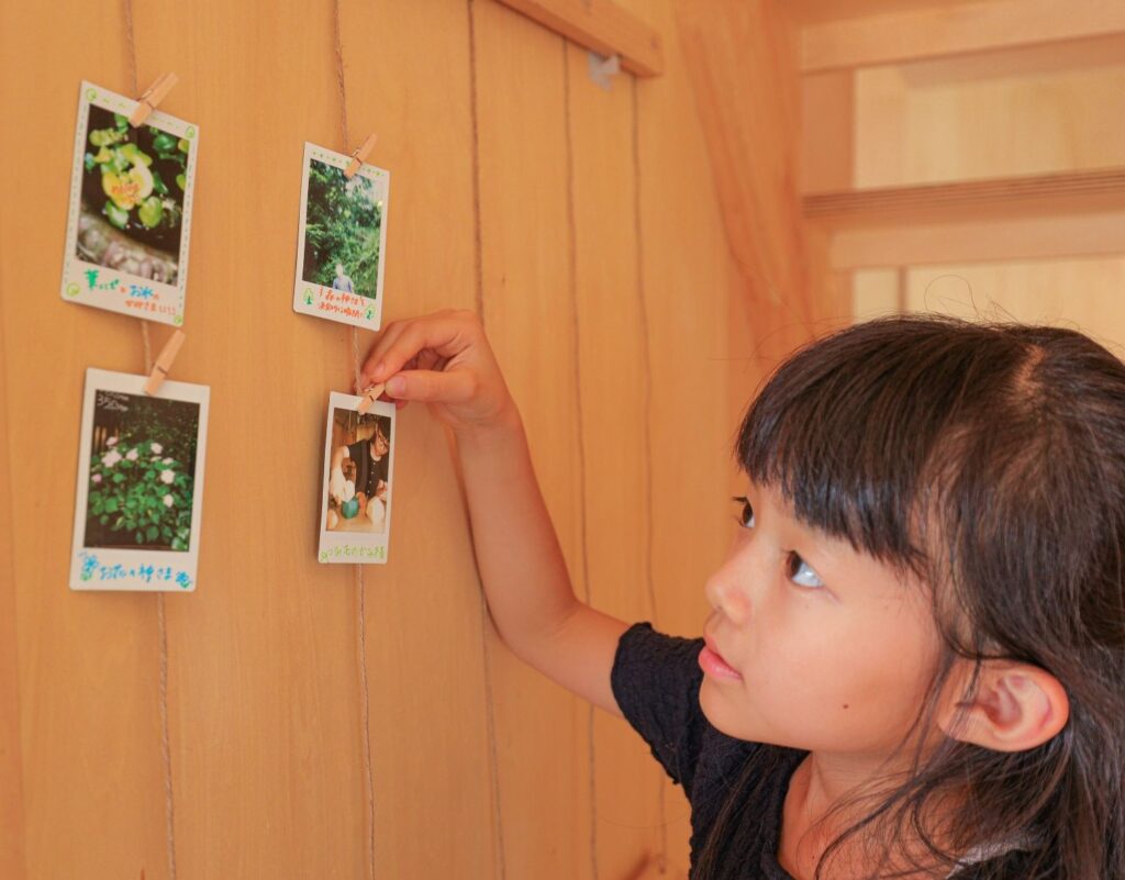 5.神様の写真とは別で、旅の思い出を撮った写真2枚を宿に置いているアルバムに貼りましょう。
