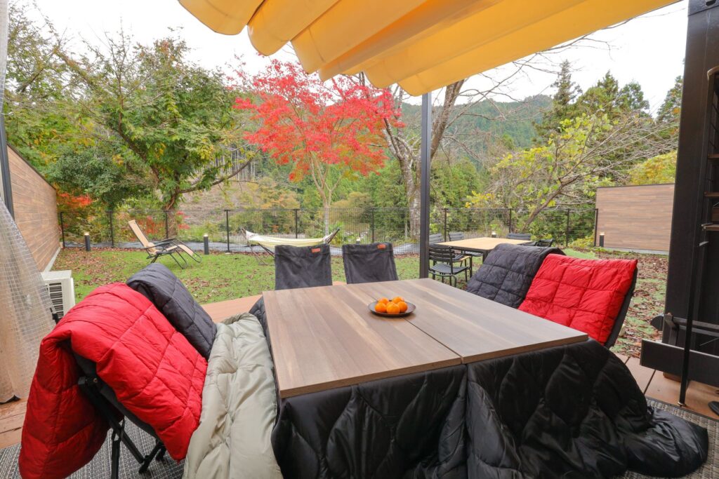 ・屋外テラスにこたつ設置