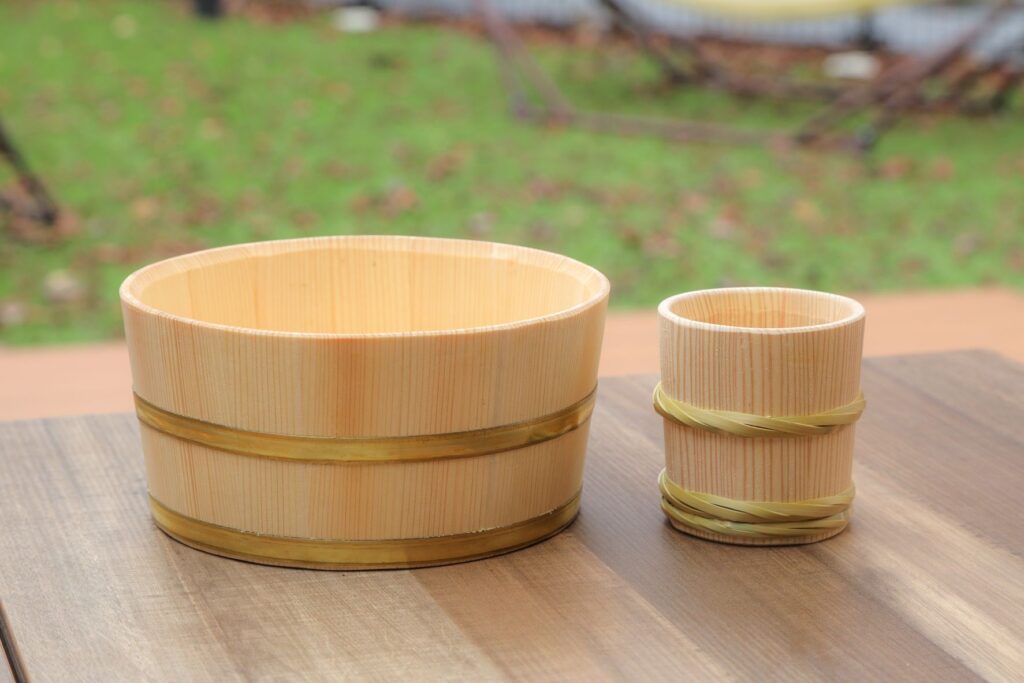 ■20,000円 地元の桶屋がつくる風呂桶と木製コップのセット