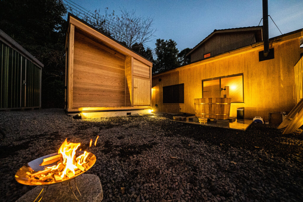 そこで思いついたのがサウナ。熊野古道を数時間トレッキングして、サウナと水風呂に入って整い、翌日また古道の続きを歩く。これなら、当宿が掲げる”リトリート体験”にも当てはまる。そして、「整う」は「蘇り」と相通じる部分がある。「熊野古道における究極のリトリート体験は、サウナではないだろうか?」と気づき、「歩いて整う文化を根付かせること」を次なるミッションに掲げました。