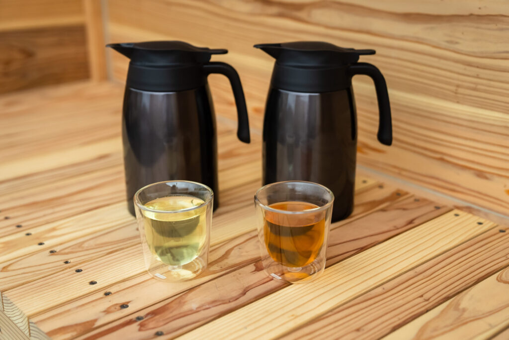 和歌山県白浜町の名産品・川添茶を使用。サウナ内に香り高い煎茶の世界が広がります