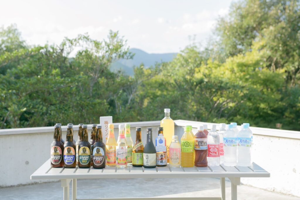 SEN.RETREATに常備している和歌山産オールインクルーシブドリンク(生姜ジンジャーエール、じゃばらサイダーなど)とポカリスエットを混ぜ合わせて、オリジナルのサウナドリンクが作れます。