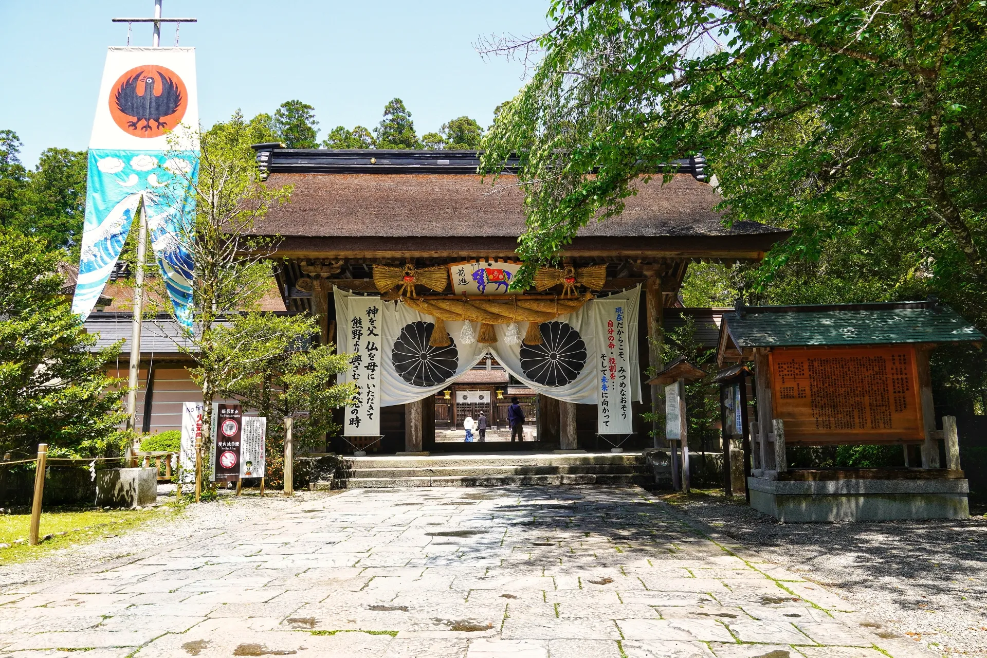全国の「熊野神社」の総本山にあたります。難行苦行の道のりを終え最初にたどり着くのがここ熊野本宮大社。 海上安全、開運招福、厄除けなどさまざまなご利益があるとされています。